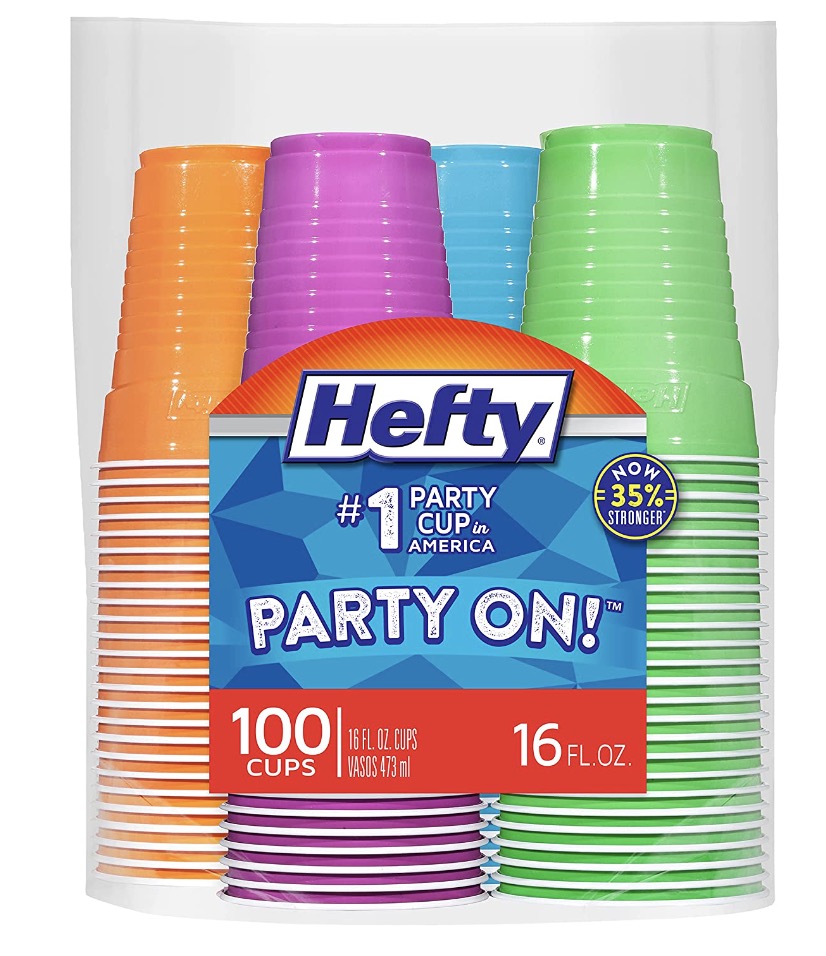 - ASSORTED PARTY CUPS: This package includes 100 count 16 ounce Hefty Party on disposable cups in assorted colors.