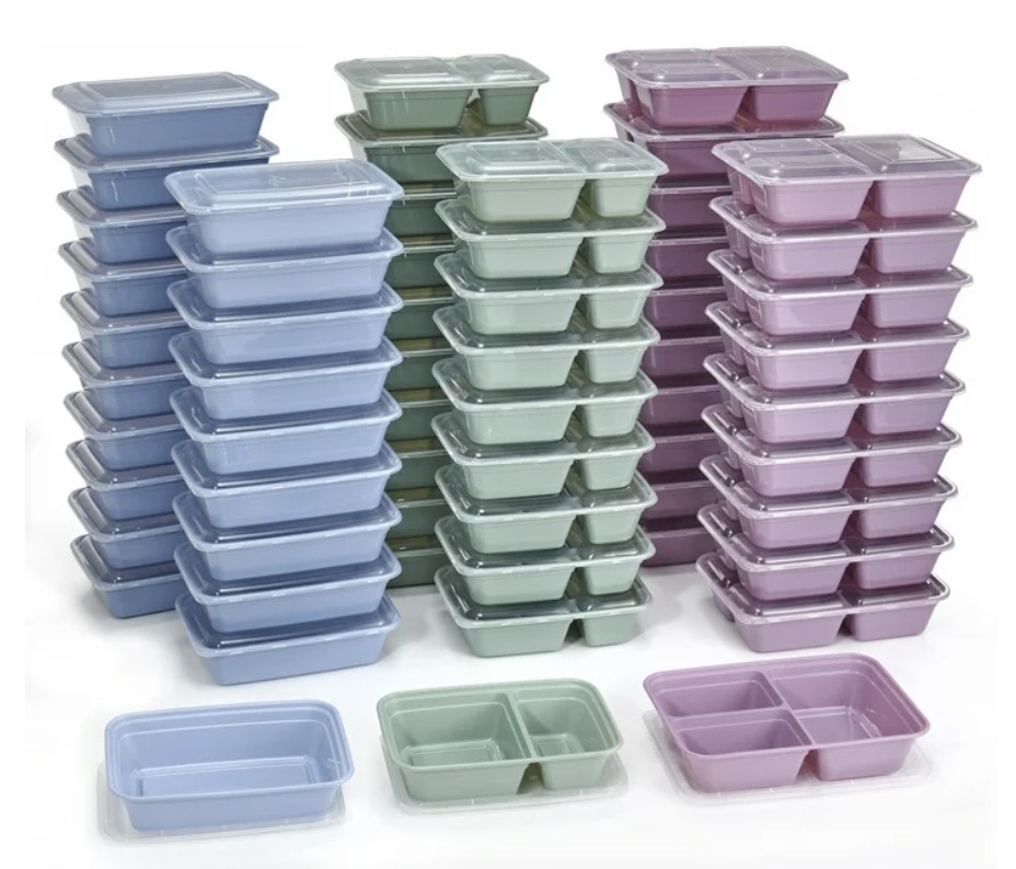 - Mainstays 3 Assorted Meal Prep Container, Clear lid and green/purple/blue container, 60 Pack