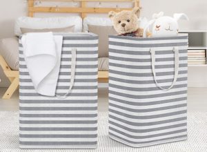 - The interior features PEVA waterproof coating to keep clothes dry and make baskets easy to clean