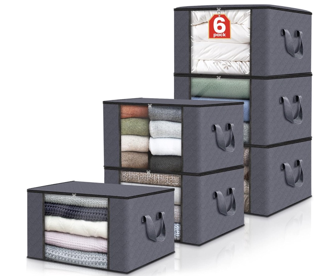 - 6 pack storage containers for organizing clothing with 60L capacity