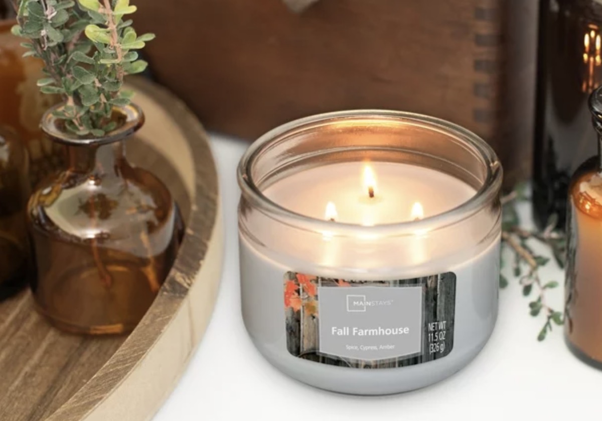 Get the aroma of Fall with this Mainstays Fall Farmhouse 3 Wick Candle from Walmart! Select scents are just $3.96! Check out the whole selection here!