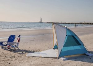 - This beach tent is designed with four sandbags in four corners to enhance its stability