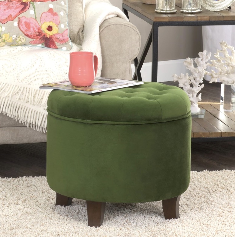 - OTTOMAN WITH STORAGE: Our Velvet Tufted Ottoman is a small and stylish storage solution for lingering accessories, and flawlessly integrates into any existing living room or bedroom furniture
