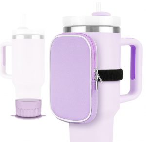 - Water bottle bag has elastic strap flexibly adjusts adapt to various tumbler sizes